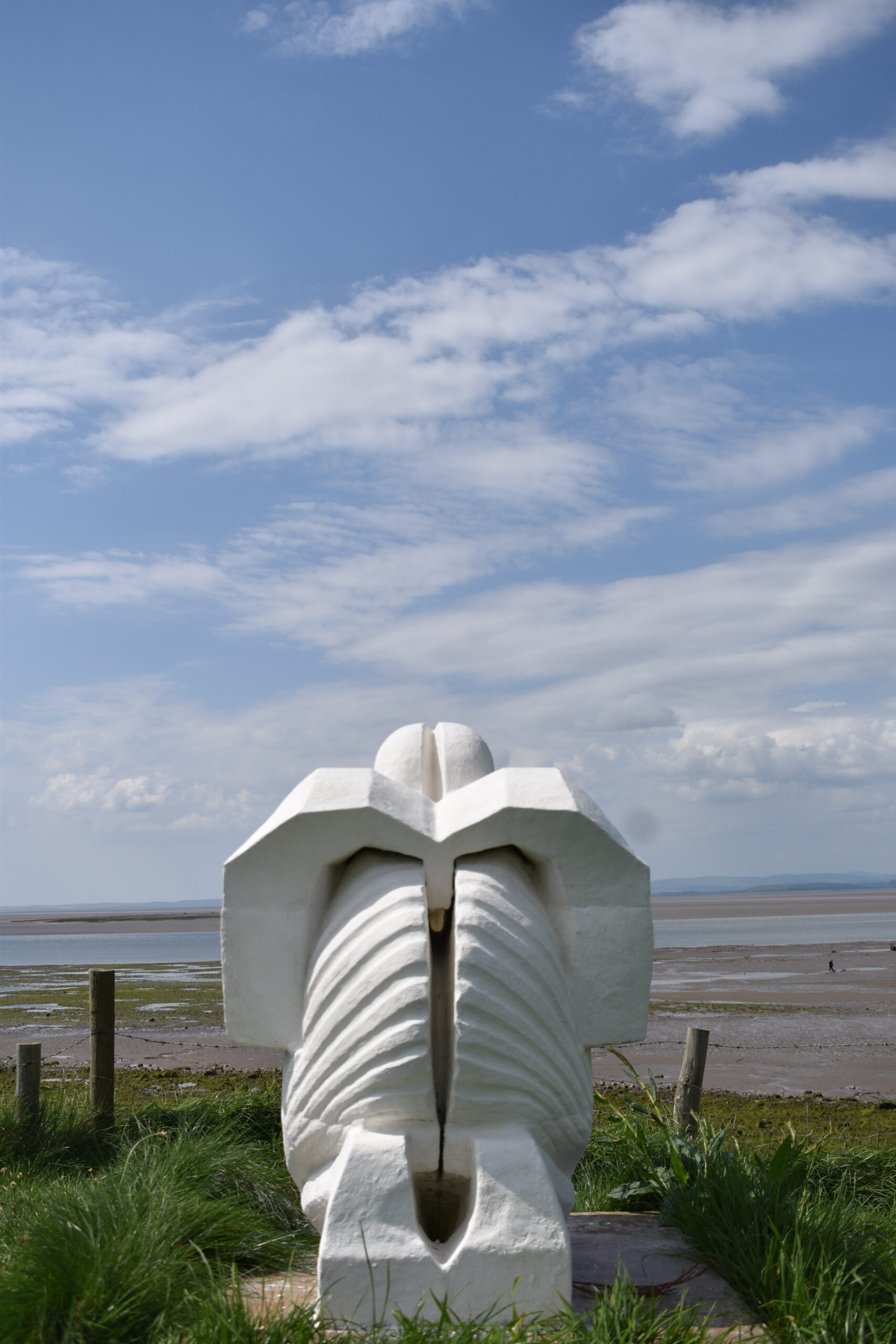 Continue along the beach towards the headland for approximately 1.8km walking around the headland and visiting the praying hands shell sculpture on the edge of Red Bank Farm campsite.